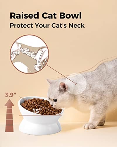 LoeJan Raised & Tilted Cat Food Bowl
