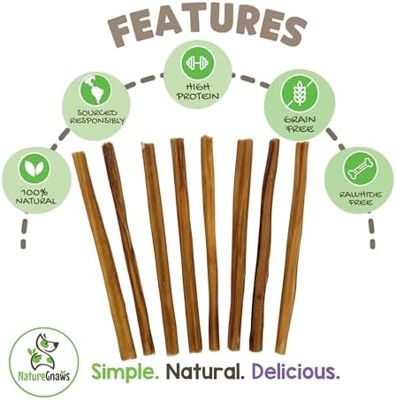 Made with natural premium quality beef pizzle, our Extra Thin Bully Sticks are ideal to keep your beloved pup busy and calm. These natural chews are perfect for teething puppies, senior chewers and small dogs. Nature Gnaws Bully Sticks are low-odor, grain-free and gluten-free, making them the perfect natural alternative to rawhide bones and manufactured dental chews. Savory snack, the natural act of chewing helps reduce plaque and tartar for cleaner teeth and fresher breath. Promoting overall good dental hygiene, these bully chews are an excellent choice for your pet. Our Beef Chews have a savory thick texture that is the perfect reward to occupy and entertain. Your dog will love the natural scent and tasty beef flavor of our chews. As a family-run business, we are dedicated to providing 100% natural dog chews, bones and treats made with responsibly sourced ingredients to ensure they are the best simple, natural, and delicious products for your beloved pups.